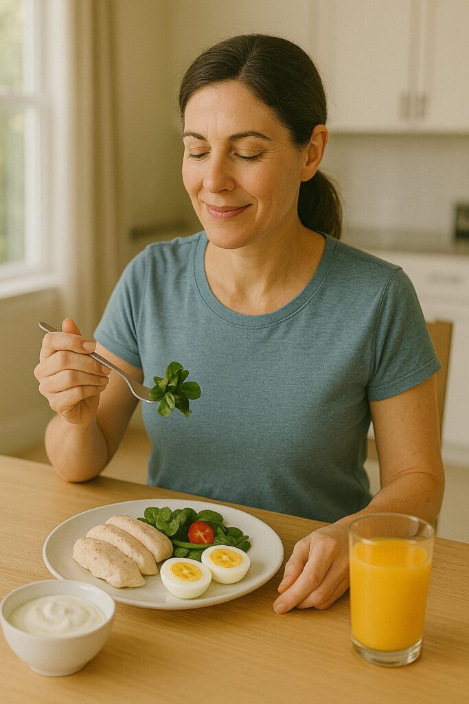 十分なタンパク質摂取は基礎代謝の維持に直結します。理由は、タンパク質が筋肉を合成し、代謝を高める役割を果たすからです。体重1kgあたり1.2〜2.0gを目安に、肉や魚、大豆製品、乳製品をバランスよく取り入れるのが理想です。例えば、朝食に卵とヨーグルト、昼食に鶏むね肉、間食にプロテインシェイクを加えると効率的に摂取できます。結果として、筋肉が維持されて代謝が高まり、太りにくく健康的な身体へと変化します。